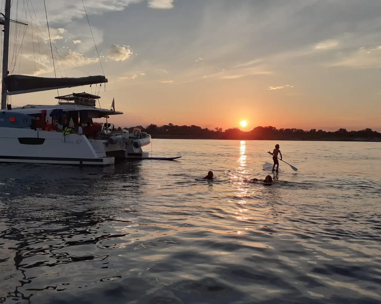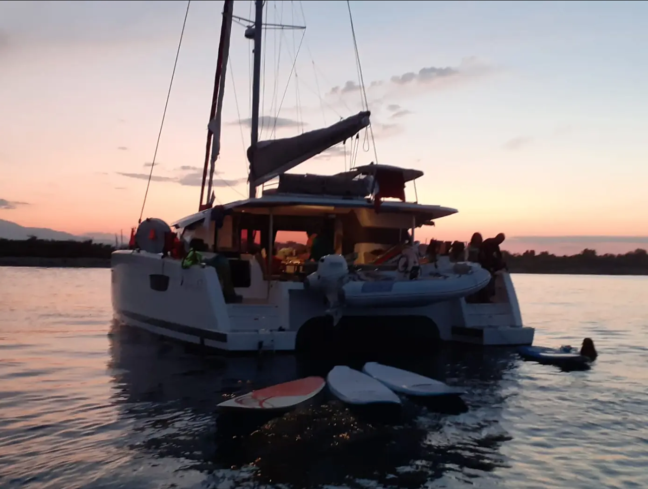 A kitesurf and wingfoil safari through the Roussillon and Costa Brava regions offers one of the most dynamic and wind-reliable experiences in Europe, blending world-class riding conditions with the freedom of a catamaran lifestyle. Starting in Leucate–La Franqui, riders are welcomed by expansive sandy beaches and shallow lagoons stretching for kilometres, creating ideal training grounds alongside open Mediterranean waters for more advanced sessions. This legendary spot is powered by the Tramontane, a strong north-westerly wind, and the Marin, a smoother south-easterly breeze, delivering wind over 300 days a year and making it a global hotspot for freestyle, freeride, and progression. The energy of the area is amplified each April during the Mondial du Vent, when the world’s top kitesurfers and windsurfers gather to compete just offshore. Continuing south to Saint-Cyprien in the sun-soaked Pyrenees-Orientales, the landscape shifts where mountains meet the sea, offering consistent winds—up to 250 windy days annually—and a versatile playground for kitesurfing, wingfoiling, windsurfing, and even winter surfing or stand-up paddling during swell periods. Crossing into Spain, the bay of Rosas and Sant Pere Pescador reveals a seven-kilometre sandy coastline with safe, user-friendly conditions, no tides or currents, and reliable summer thermal winds of around 15 knots, complemented by stronger southerly winds in the shoulder seasons that can reach 25 knots. The flat to lightly choppy waters make it a freeride paradise, particularly suited to intermediate riders looking to progress in a relaxed and social environment. What truly elevates this journey is the catamaran safari format itself: the ability to follow the best wind each day, access uncrowded or remote spots, and seamlessly combine different wind systems and riding styles within a single trip. From glassy lagoon sessions to open-sea wave riding, each day offers variety and progression, all framed by the stunning Mediterranean coastline, vibrant beach culture, and the unique rhythm of life at sea—ride, sail, relax, and repeat.